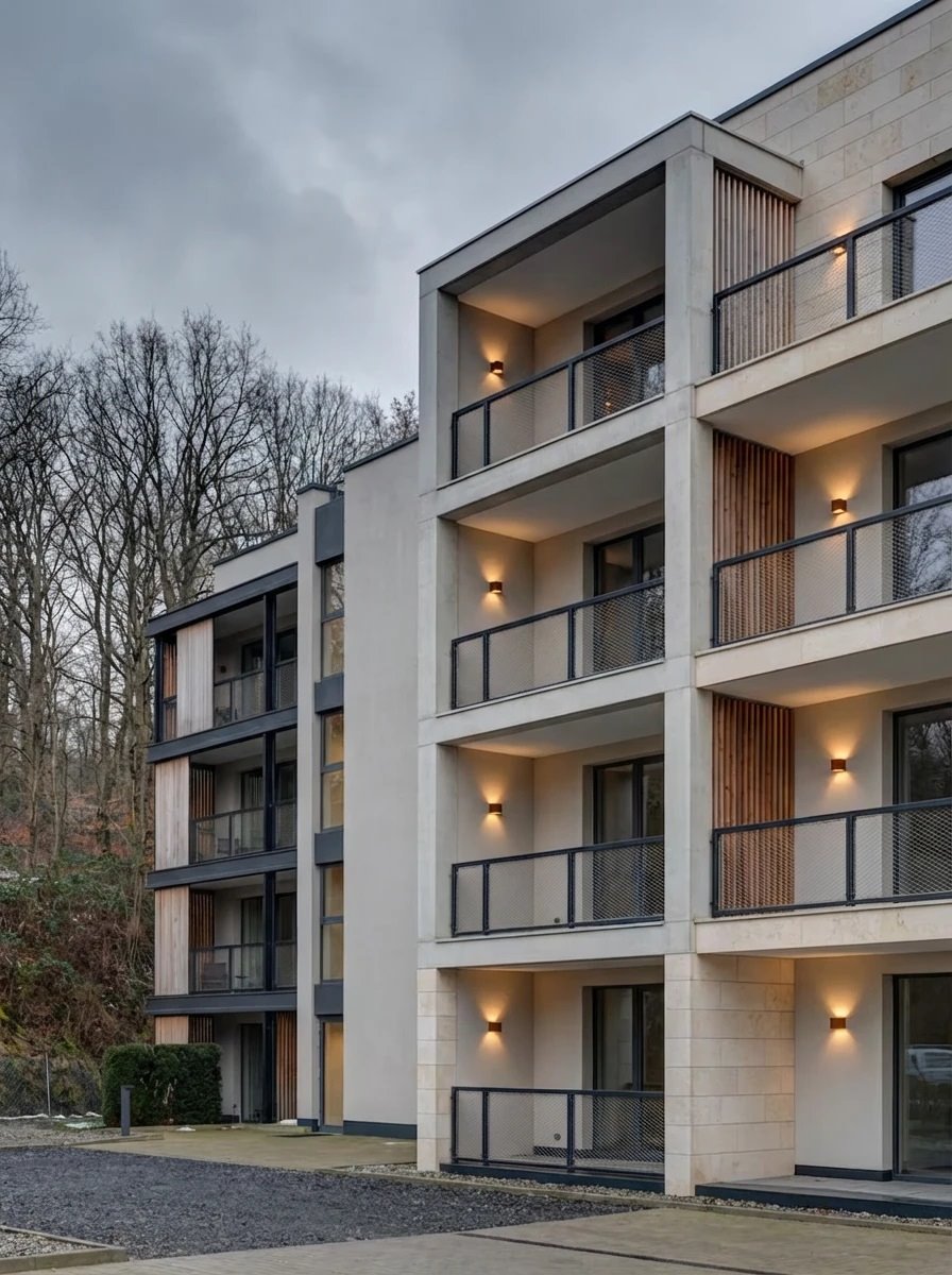 Minimalistyczna bryła w kształcie sześcianu sprawia, że kinkiet elewacyjny Cube Lite przyciąga uwagę swoją prostotą i elegancją, jednocześnie pozostając niezwykle uniwersalnym dodatkiem do współczesnych aranżacji. Czarna obudowa nadaje mu wyrafinowanego charakteru, który doskonale komponuje się zarówno z jasnymi, jak i ciemnymi elewacjami, podkreślając architekturę budynku w subtelny, ale wyrazisty sposób. Dzięki kompaktowym wymiarom 10x10 cm oprawa nie dominuje przestrzeni, lecz harmonijnie wpisuje się w otoczenie, tworząc spójną i estetyczną całość. Zastosowanie światła skierowanego w dwóch kierunkach - do góry i do dołu, pozwala uzyskać efekt dekoracyjnych smug świetlnych, które modelują powierzchnię ściany i dodają jej głębi. Taki sposób oświetlenia nie tylko zwiększa walory wizualne budynku, ale również wpływa na jego postrzeganie po zmroku, nadając mu nowoczesnego, designerskiego charakteru, który przyciąga wzrok i buduje wyjątkowy klimat.