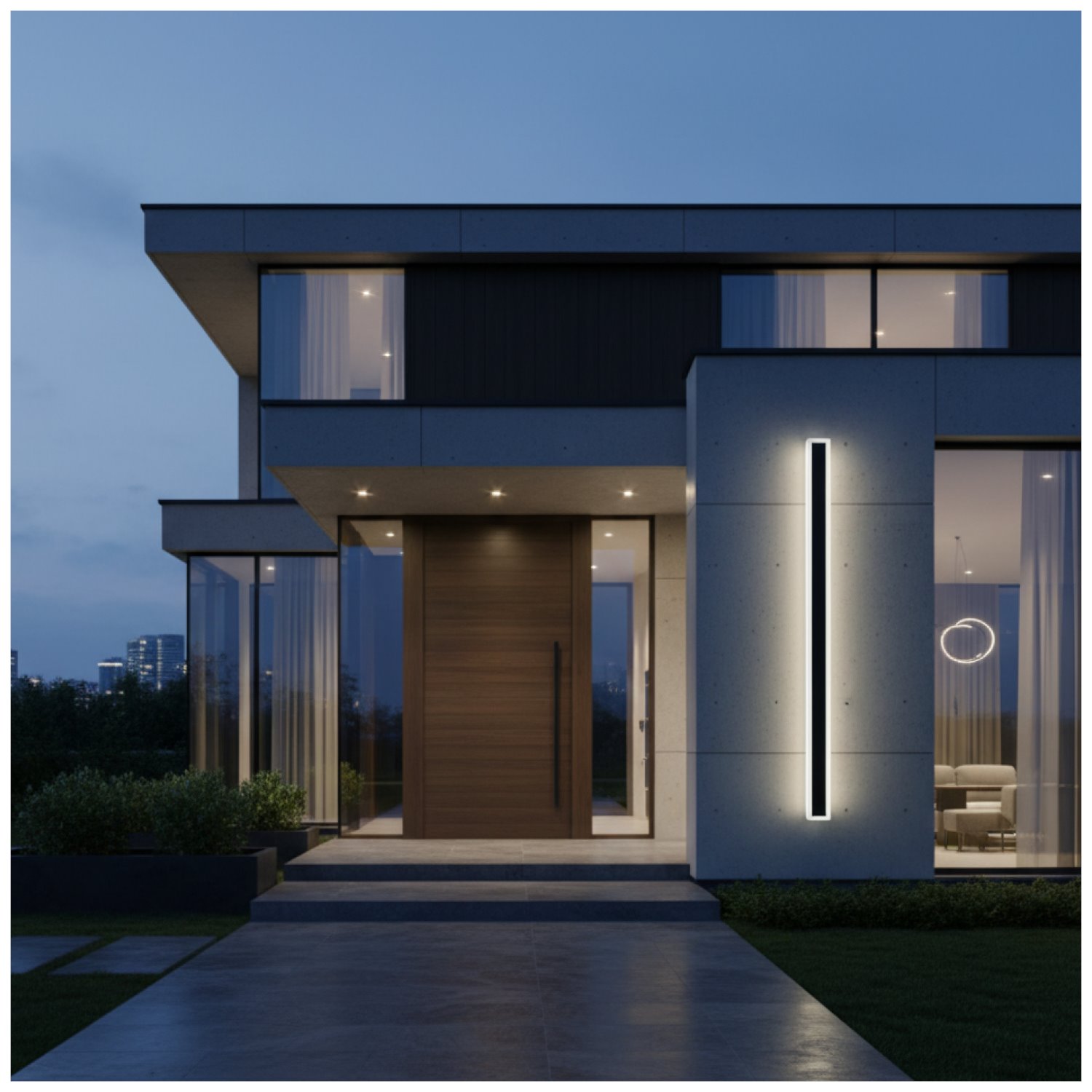Smukła forma o wysokości 60 cm sprawia, że kinkiet elewacyjny LED Mirana Ambient staje się nie tylko źródłem światła, ale także wyrafinowanym elementem dekoracyjnym fasady budynku. Już na pierwszy rzut oka przyciąga uwagę swoją minimalistyczną sylwetką oraz eleganckim, czarnym wykończeniem, które doskonale wpisuje się w nowoczesne trendy architektoniczne. Prosta, geometryczna linia lampy przypomina subtelny pionowy akcent na ścianie, który podkreśla strukturę elewacji i dodaje jej charakteru. Dzięki temu kinkiet świetnie komponuje się zarówno z nowoczesnymi domami jednorodzinnymi, jak i minimalistycznymi budynkami o prostych bryłach. Zastosowane diody ukryte pod kloszem z tworzywa PMMA delikatnie rozpraszają światło, tworząc miękką, równomierną poświatę na ścianie. Czarna, matowa obudowa wykonana ze stali dodaje lampie nowoczesnego charakteru oraz wizualnej lekkości, mimo solidnej konstrukcji. Takie zestawienie materiałów sprawia, że kinkiet Mirana doskonale podkreśla wejście do domu, elewację tarasu czy przestrzeń wokół balkonu. Co więcej, jego pionowy układ sprawia, że światło rozchodzi się równomiernie w górę i w dół ściany, tworząc efekt dekoracyjny, który przyciąga wzrok już z daleka.