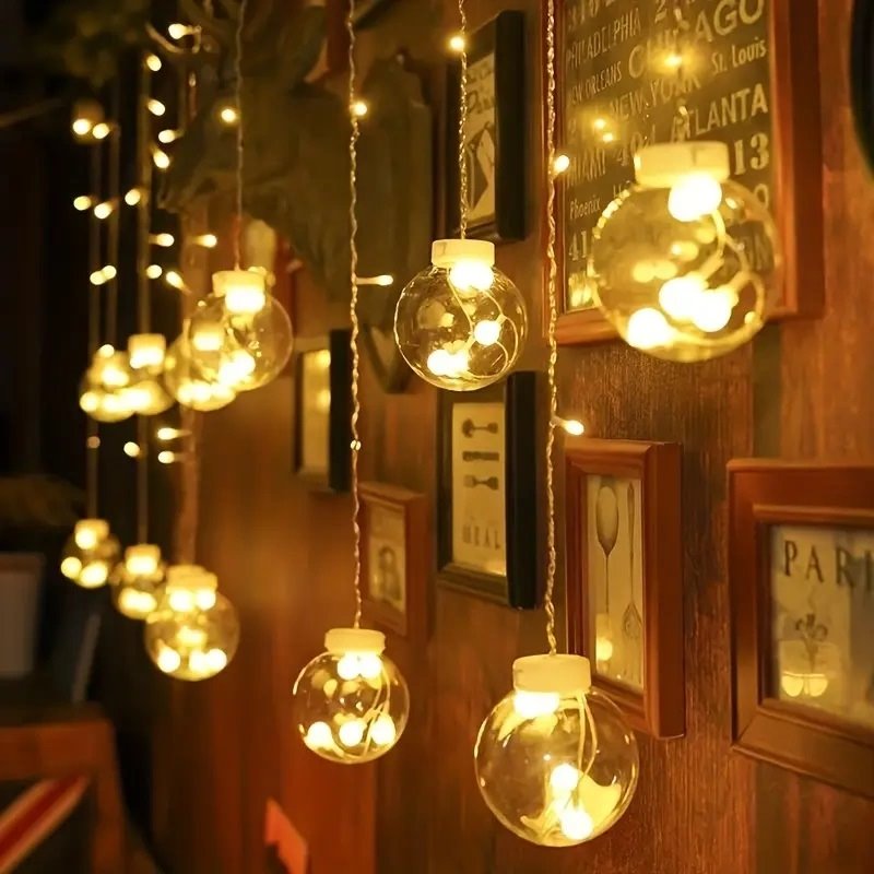 Magiczna kurtyna świetlna z bombkami do dekoracji wnętrz