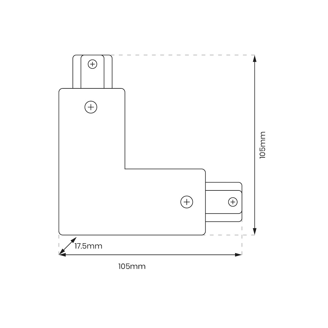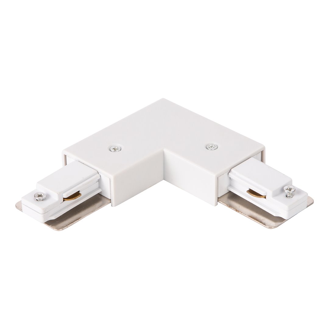 Łącznik kątowy z zasilaniem do szyn oświetleniowych jednofazowych w wersji profesjonalnej. Kolor biały.