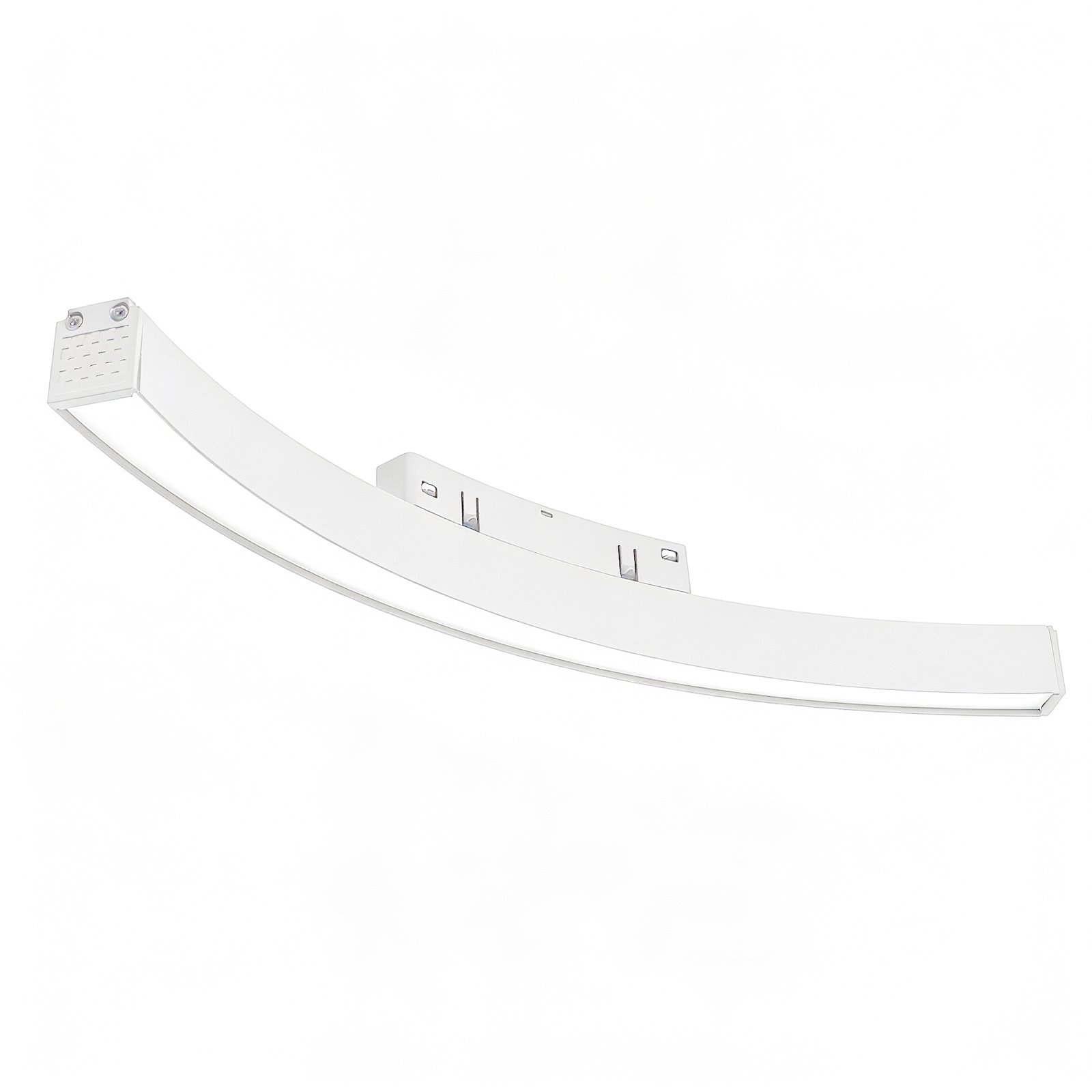 Lampa szynowa mleczna biała o mocy 13W do montażu w zaokrąglonych narożnikach szynoprzewodu magnetycznego. Neutralna barwa światła 4000K. Idealne rozwiązanie do efektownego podświetlenia szyny w narożniku.