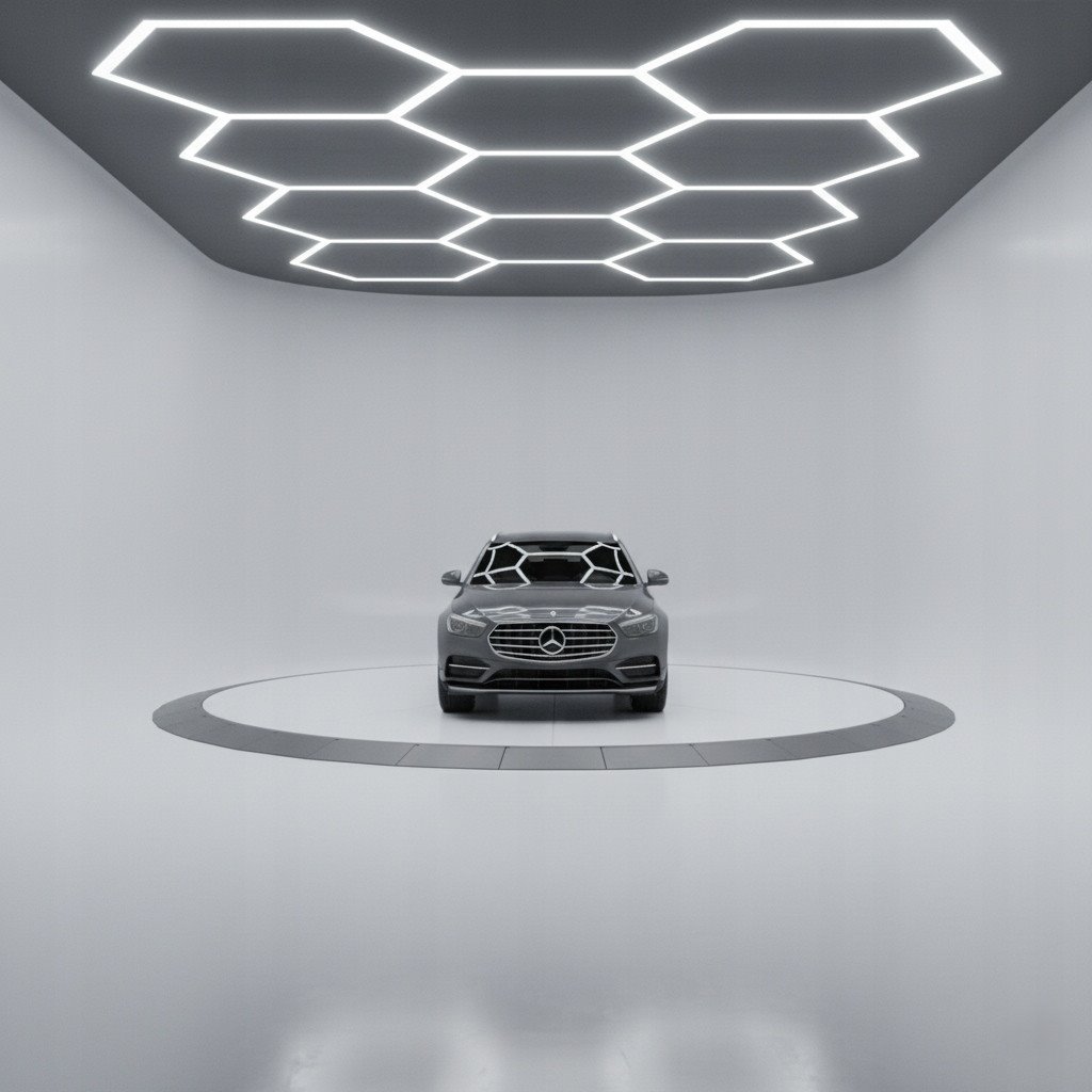 Lampa LED Hexagon CRI90 11S o mocy 368W to nowoczesny zestaw oświetleniowy, które zachwyca zarówno swoim wyglądem, jak i funkcjonalnością. Unikalna konstrukcja w formie jedenastu sześciokątów (46 modułów o długości 44 cm) tworzy futurystyczny wygląd, który idealnie wkomponuje się w nowoczesne wnętrza, studia fotograficzne, warsztaty, biura czy przestrzenie komercyjne. Dzięki zastosowaniu technologii LED zapewnia wydajne i energooszczędne oświetlenie, które równomiernie rozprasza światło po całym pomieszczeniu. Lampa emituje zimne białe światło o temperaturze 6500K, co sprzyja lepszemu skupieniu i zwiększa komfort pracy. Wysoki strumień świetlny o wartości 47840 lumenów sprawia, że zestaw jest doskonałym rozwiązaniem do miejsc wymagających intensywnego oświetlenia. Solidne wykonanie i starannie dobrane materiały, gwarantują trwałość oraz estetyczny wygląd przez długi czas.