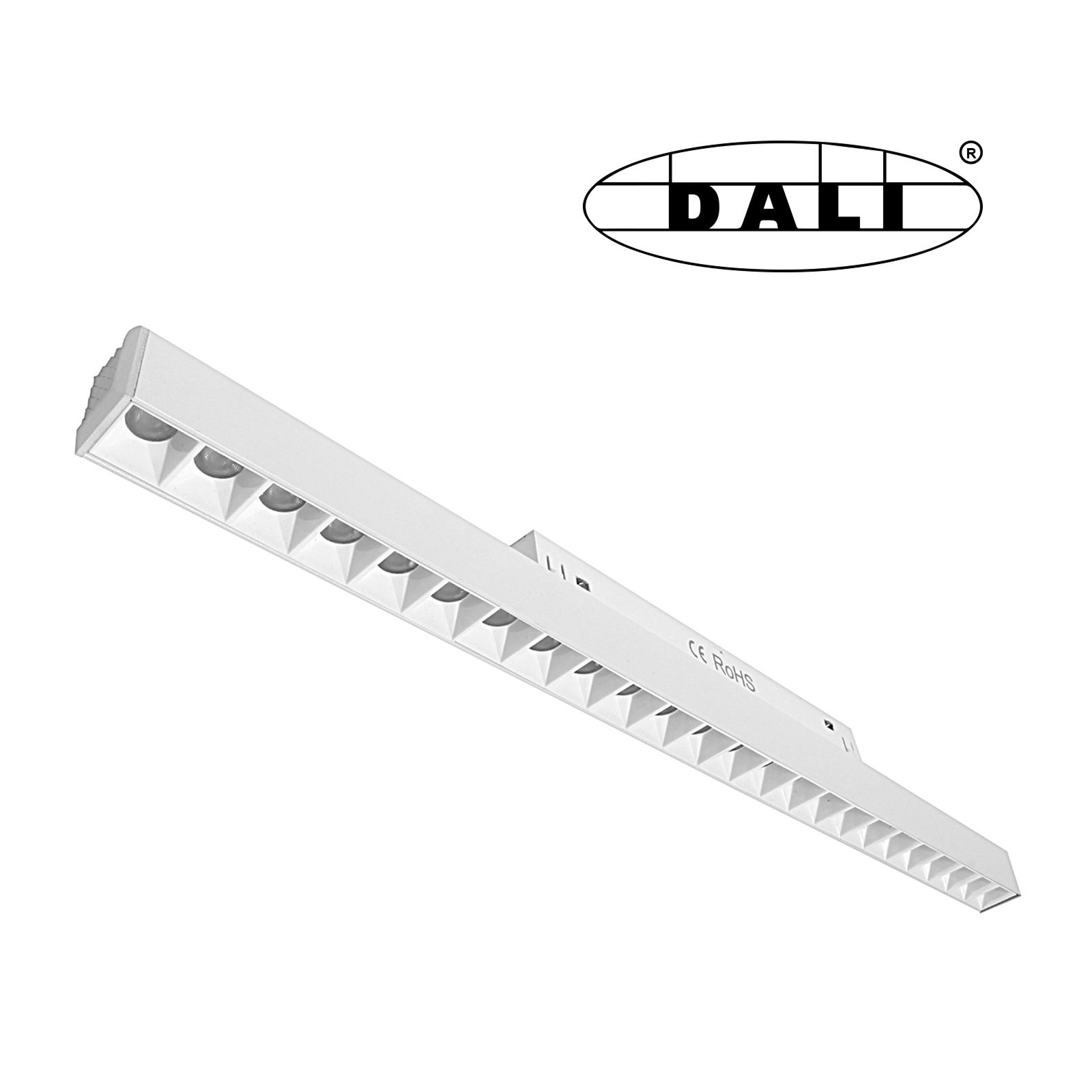 Lampa magnetyczna punktowa biała o mocy 24W i długości 44 cm, współpracująca z systemem Dali. Możliwość regulacji natężenia światła i zmiany barwy w zakresie 2700K-6000K.