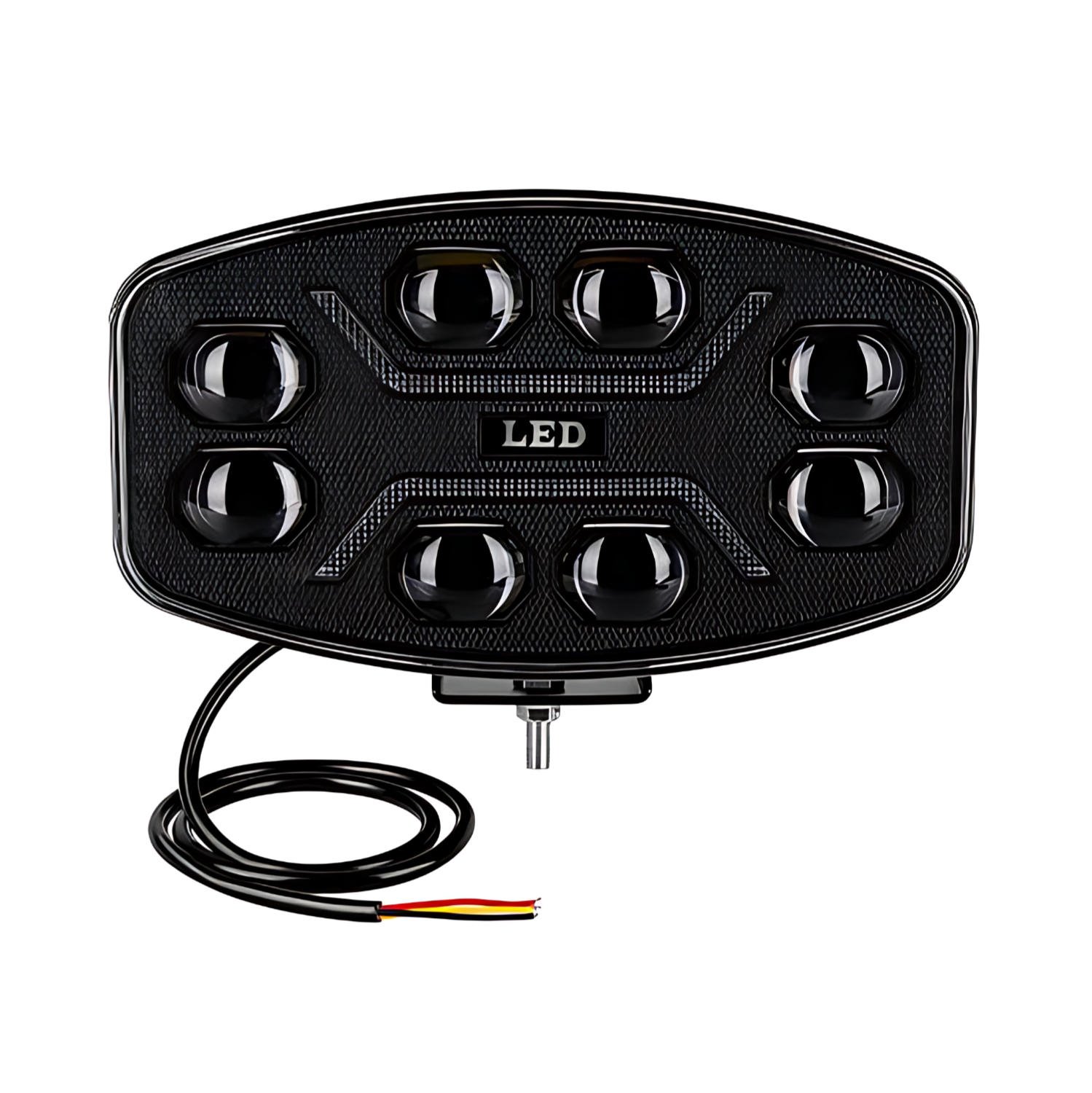 - Funkcje: Światło dzienne (kabel biały) / światło ostrzegawcze/ stroboskop (kabel niebieski) / światło robocze (kabel żółty)/ światło dalekosiężne (kabel czerwony)