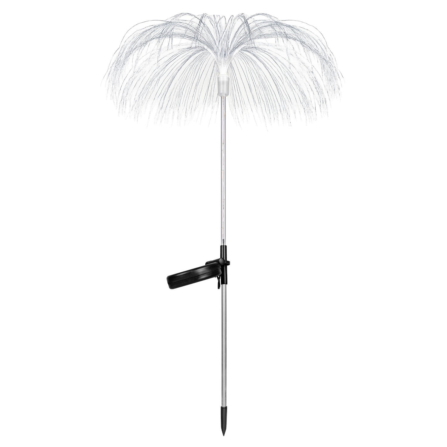 Lampa solarna LED RGB wbijana w formie meduzy to efektowna dekoracja ogrodowa. Zapewnia delikatne, wielokolorowe podświetlenie, a wbudowany szpikulec pozwala na stabilny montaż lampy w gruncie.