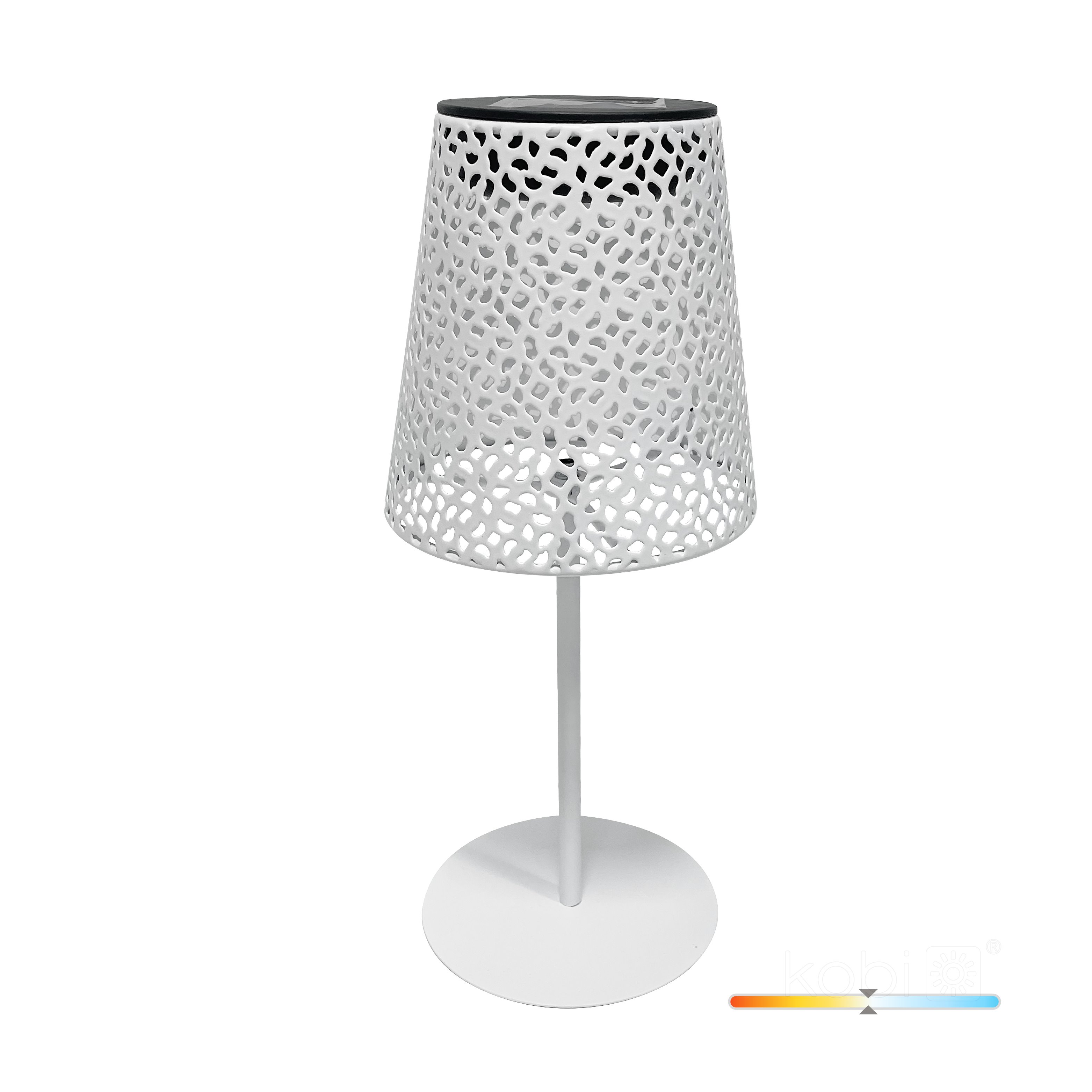 Solarna lampa stołowa IP44 z ażurowym kloszem i czujnikiem zmierzchu