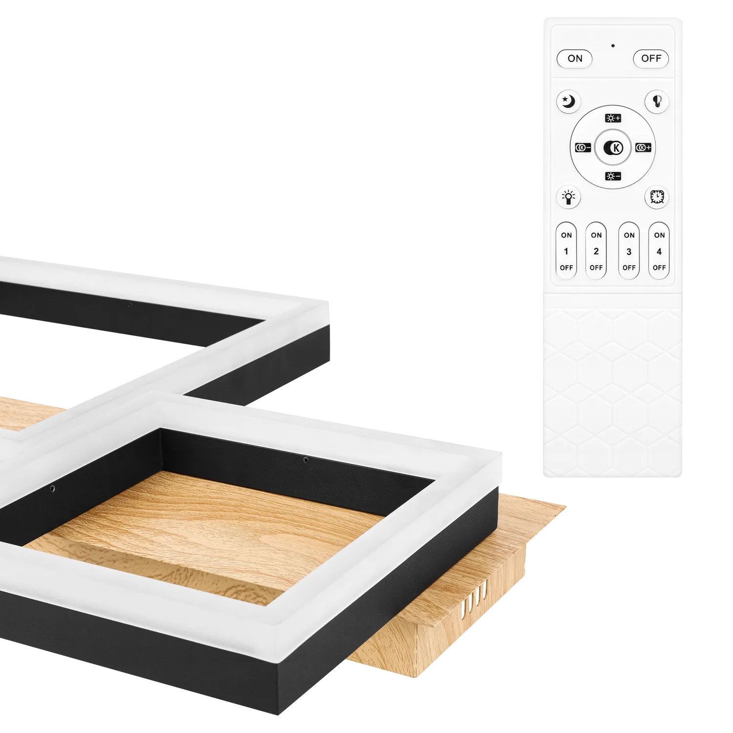 Nowoczesna lampa LED sterowana pilotem - kwadraty 70W z drewnianą podstawą
