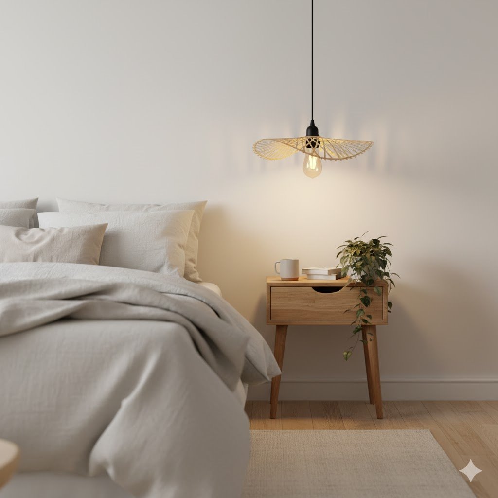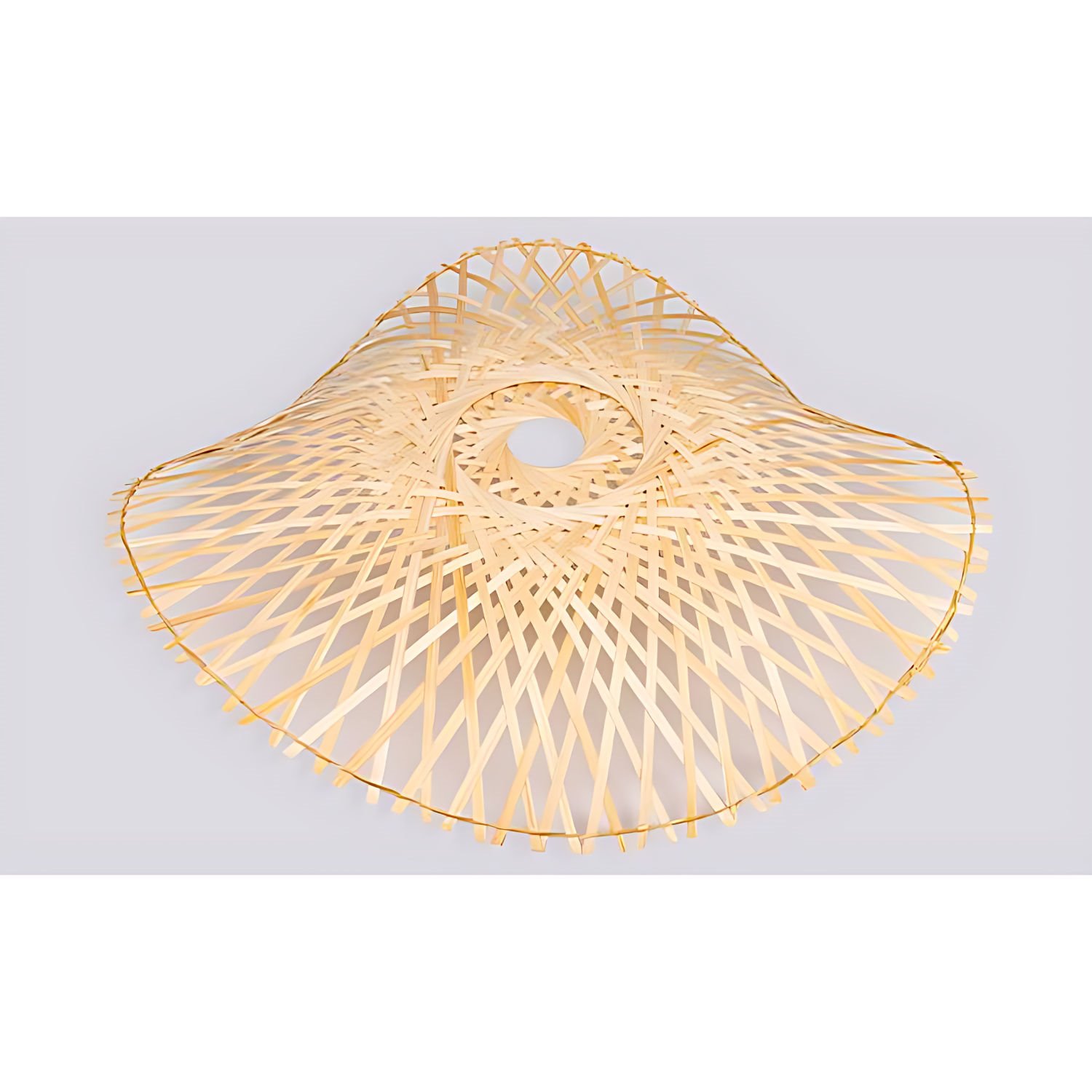 Starannie dobrane materiały oraz przemyślana konstrukcja czynią naszą lampę nie tylko piękną, ale również trwałą i solidną w codziennym użytkowaniu. Połączenie naturalnego bambusa z czarną stalą sprawia, że klosz nabiera lekkości, a jednocześnie zachowuje sztywność niezbędną do utrzymania geometrycznej formy. Ażurowa budowa elementu dekoracyjnego sprawia, że światło żarówki swobodnie przenika przez cienkie paski materiału, tworząc efektowną grę cieni na ścianach i suficie, którą trudno uzyskać w przypadku tradycyjnych zamkniętych kloszy. Sama podstawa o wymiarach Ø100 x 25 mm gwarantuje stabilny montaż do sufitu, a długi przewód pozwala dopasować wysokość zawieszenia do specyfiki wnętrza czy preferowanego stylu oświetlenia. Minimalistyczne wykończenie w kolorze czarnym nadaje lampie elegancji i pozwala na jej łatwe zestawienie z innymi dodatkami, niezależnie od dominującej palety kolorystycznej. Ten model świetnie sprawdzi się w przestrzeniach, w których priorytetem jest naturalność, lekkość oraz designerski charakter. Jego forma przypomina delikatne skrzydła, co tworzy wizualną metaforę swobody i harmonii. Dzięki możliwości zastosowania dowolnej żarówki LED E27 użytkownik może samodzielnie kreować klimat pomieszczenia - od ciepłego, nastrojowego światła po bardziej wyraziste i białe, idealne do pracy czy spotkań.