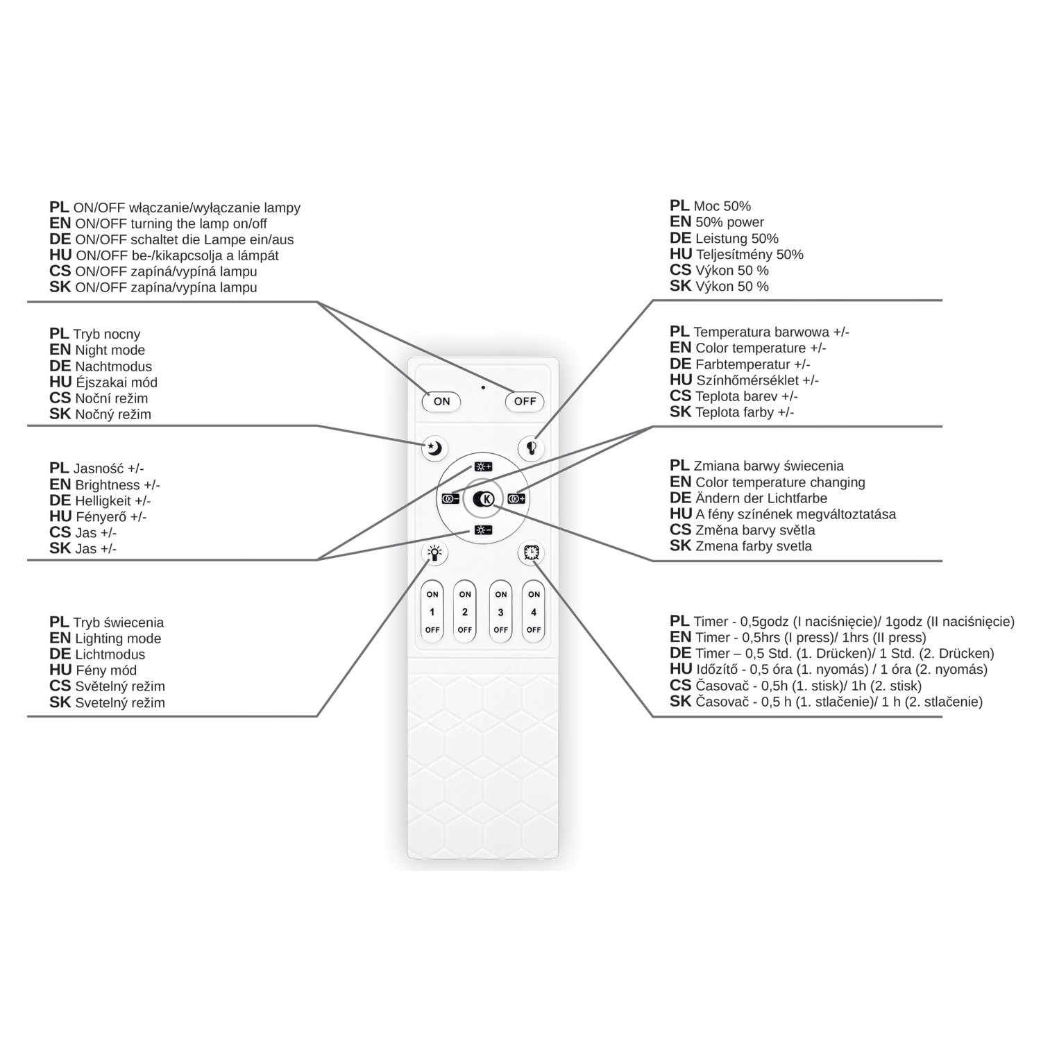 - Sposób sterowania: Pilot RF