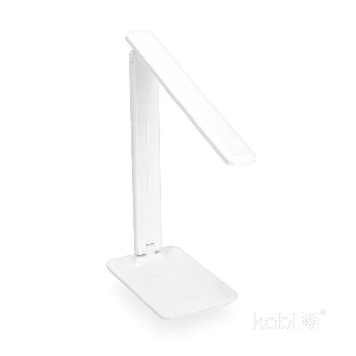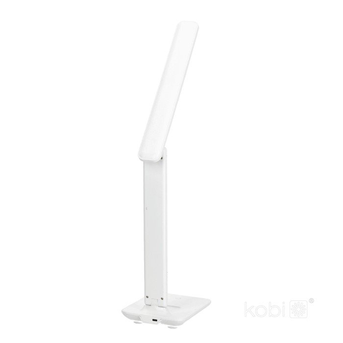Biała lampka na biurko LED z klipsem o mocy 2,5W. Lampka biurkowa z możliwością regulacji intensywności światła, wyposażona w elastyczne, regulowane ramie.