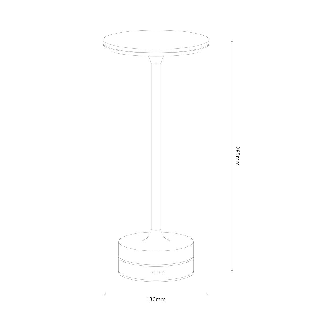 Lampa Tavola została wyposażona w zintegrowane źródło LED o mocy 2,5W, które zapewnia strumień świetlny na poziomie 250 lumenów oraz możliwość regulacji barwy światła w zakresie od 3000K do 6000K. Użytkownik może dopasować oświetlenie do aktualnych potrzeb - ciepłe, sprzyjające relaksowi światło sprawdzi się wieczorem, a chłodniejsze, bardziej energetyzujące barwy będą odpowiednie podczas pracy czy czytania. Dodatkowym atutem jest funkcja ściemniania, dzięki której łatwo uzyskać idealny nastrój. Jeszcze większą swobodę użytkowania daje wbudowany akumulator o napięciu 3,7V, umożliwiający ustawienie lampki w dowolnym miejscu bez konieczności korzystania z gniazdka. To rozwiązanie otwiera szerokie możliwości aranżacyjne zarówno w przestrzeniach komercyjnych, jak i domowych. Lampkę można ustawić na stoliku w ogrodzie zimowym, w recepcji hotelowej, na półce w salonie czy na nocnym stoliku, bez plątaniny kabli. Płaska, stabilna podstawa gwarantuje bezpieczne użytkowanie, a dołączony przewód do ładowania sprawia, że uzupełnienie energii jest szybkie i wygodne.