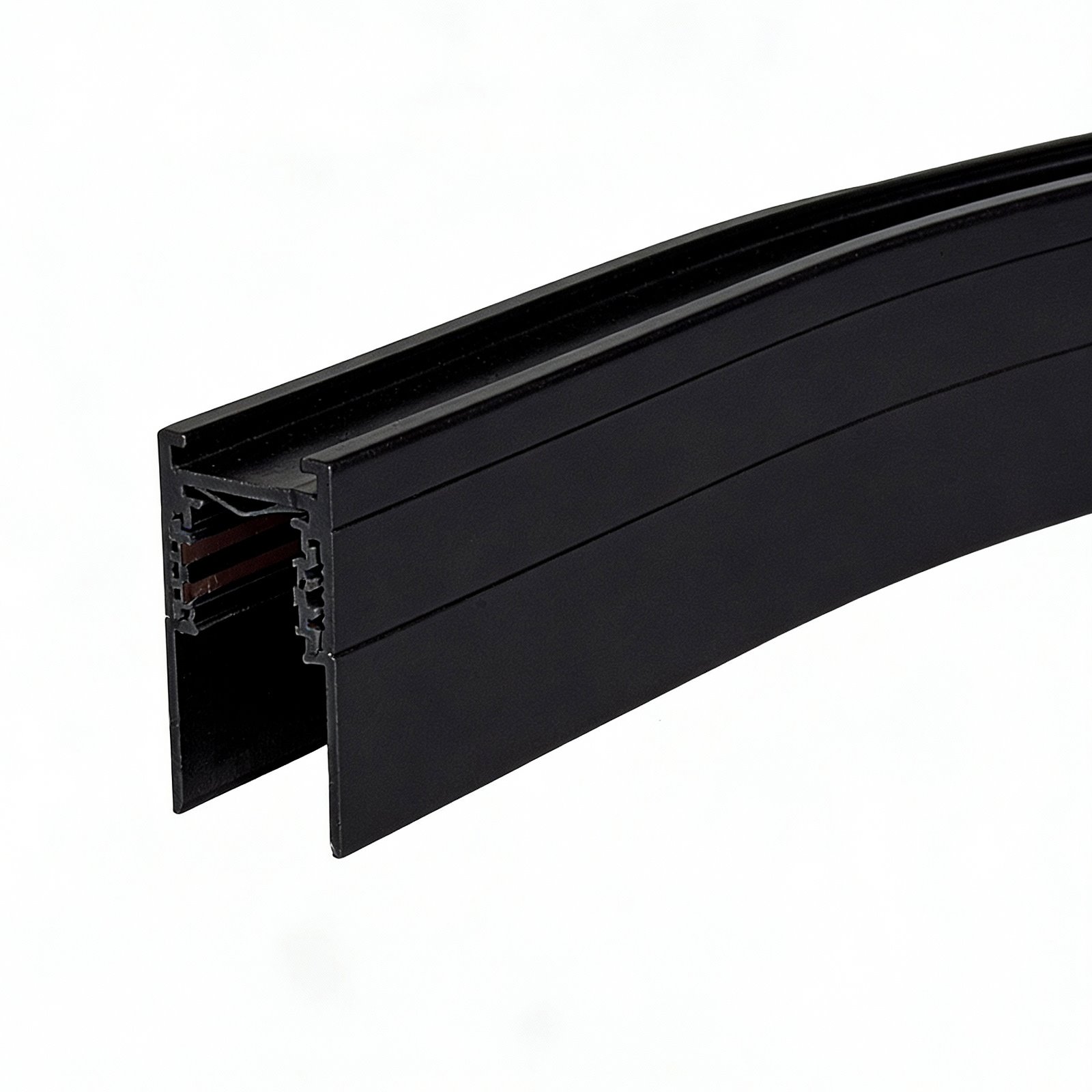 Narożnik półokrągły do szyn magnetycznych montowanych natynkowo. Umożliwia półokrągłe połączenie dwóch szyn w płaszczyźnie sufitu. Kolor czarny.