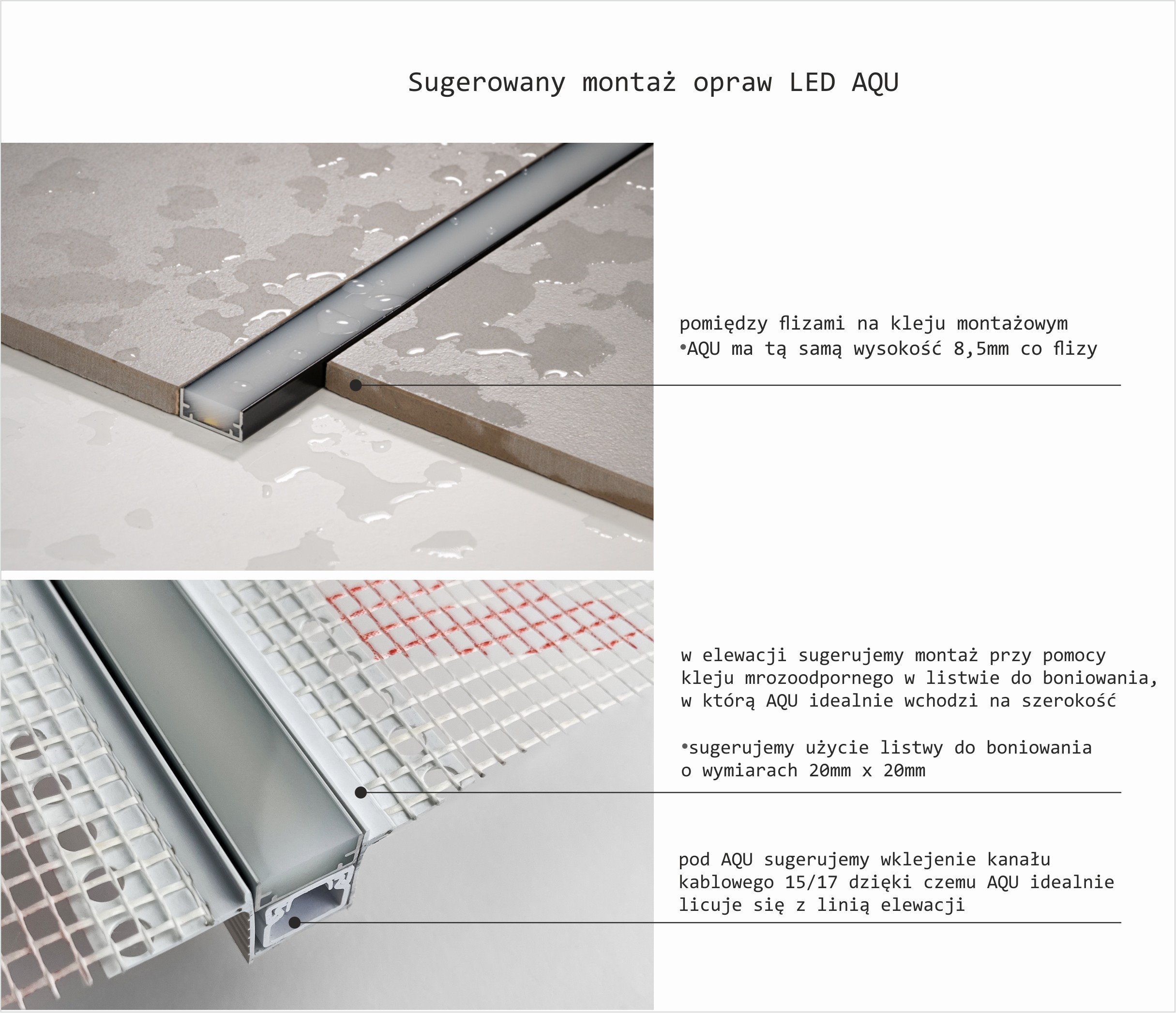 *pod AQU sugerujemy wklejenie kanału kablowego 15/17 dzięki czemu AQU idealnie licuje się z linią elewacji