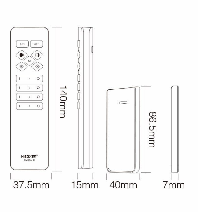Biały pilot C1 dedykowany do współpracy z odbiornikami MONO (FUT036) lub CCT (FUT035) firmy Mi-Light. Przy jego pomocy możemy płynnie zmieniać jasność taśm jednokolorowych lub temperaturę barwową taśm CCT. W połączeniu z dedykowanymi odbiornikami systemu Mi-Light możliwe jest stworzenie do 4 niezależnych od siebie stref, do każdej z nich można przypisać dowolną ilość produktów.