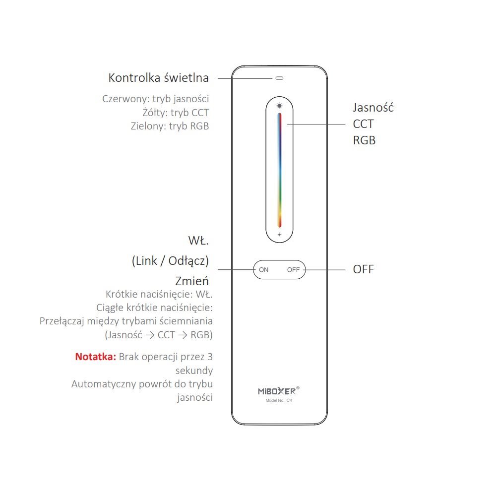 Podstawowe parametry i funkcje pilota C4: