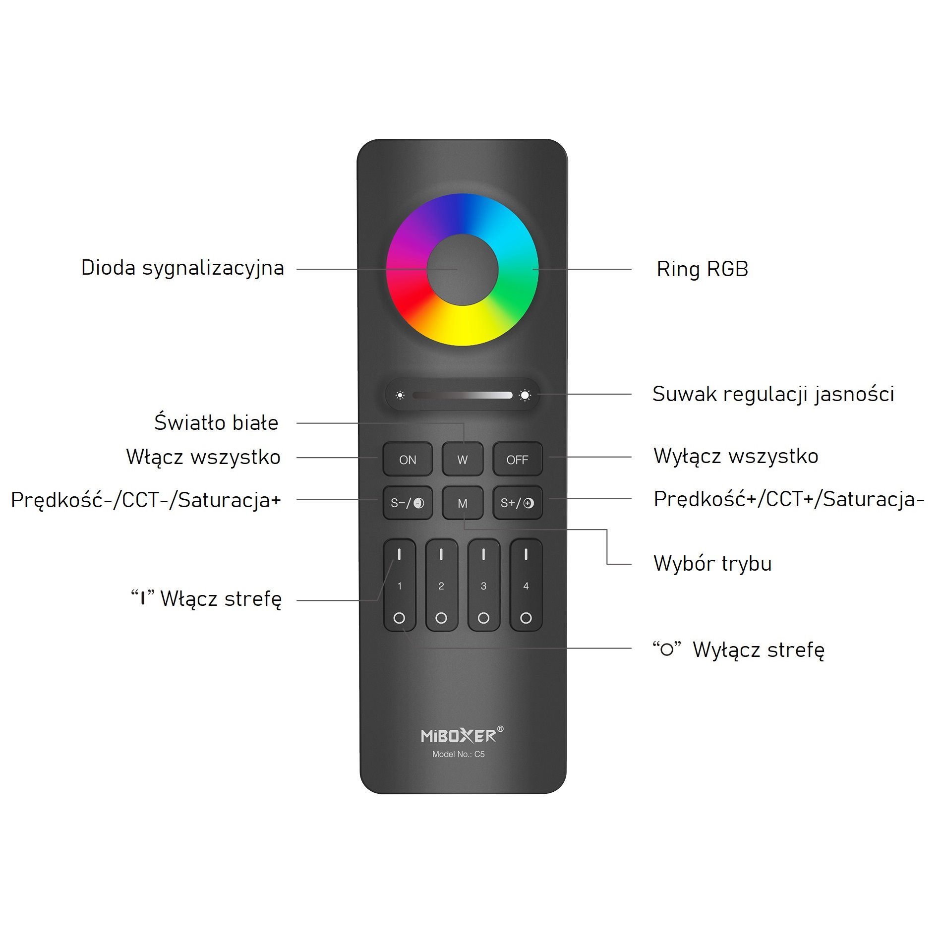 Pilot C5 jest kompatybilny z urządzeniami Mi-Light i MiBoxer: