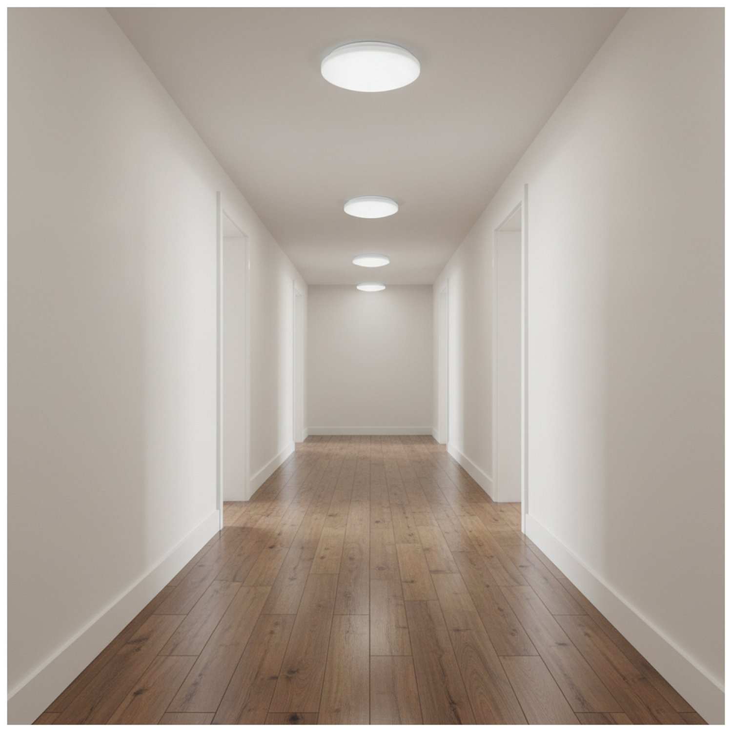Odpowiednie oświetlenie to nie tylko kwestia estetyki, ale przede wszystkim komfortu użytkowania przestrzeni. Plafon LED Sofi o mocy 18W i strumieniu świetlnym 1620 lumenów zapewnia jasne, neutralne światło, które idealnie sprawdza się w oświetleniu ogólnym pomieszczeń. Jego szeroki kąt świecenia 120° sprawia, że oprawa skutecznie doświetla większą powierzchnię pomieszczenia, eliminując problem niedoświetlonych stref. Neutralna barwa światła jest szczególnie ceniona w codziennym użytkowaniu. Przypomina naturalne światło dzienne, dzięki czemu sprzyja koncentracji i nie męczy wzroku. To rozwiązanie idealne zarówno do mieszkań, jak i do przestrzeni użytkowych, takich jak biura, korytarze czy pomieszczenia usługowe. Konstrukcja oprawy została przemyślana tak, aby zapewnić trwałość i wygodę użytkowania przez długi czas. Stalowa podstawa odpowiada za stabilność montażu, natomiast mleczny klosz z polistyrenu równomiernie rozprowadza światło po całym pomieszczeniu. Dzięki swojej uniwersalności plafoniera LED Sofi doskonale sprawdzi się jako główne źródło światła w wielu pomieszczeniach, tworząc jasne i przyjazne środowisko do codziennego funkcjonowania.
