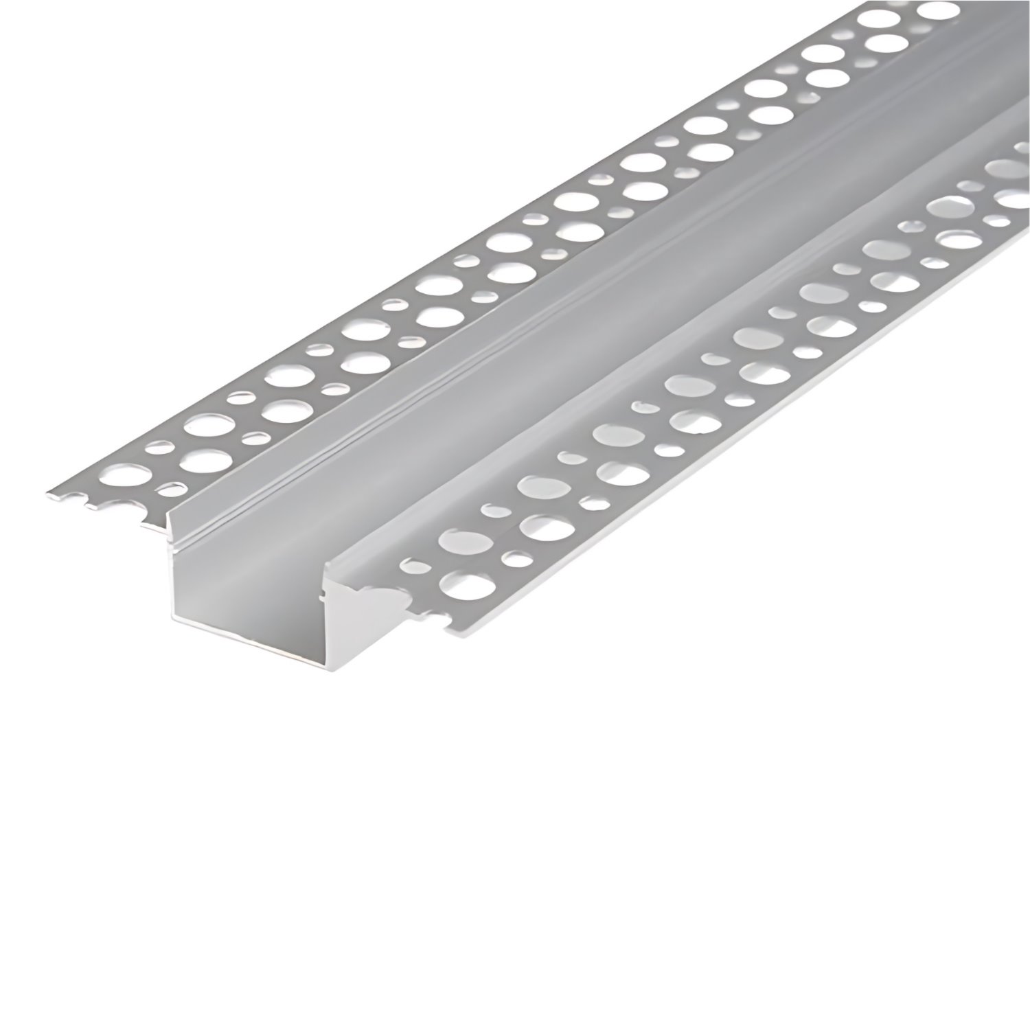Profil LED wpuszczany Maxi w srebrnym kolorze w zestawie z mlecznym kloszem, z możliwością instalacji dwóch taśm LED równolegle. Profil o długości 2 metrów, przeznaczony do montażu między płytami karton-gips.