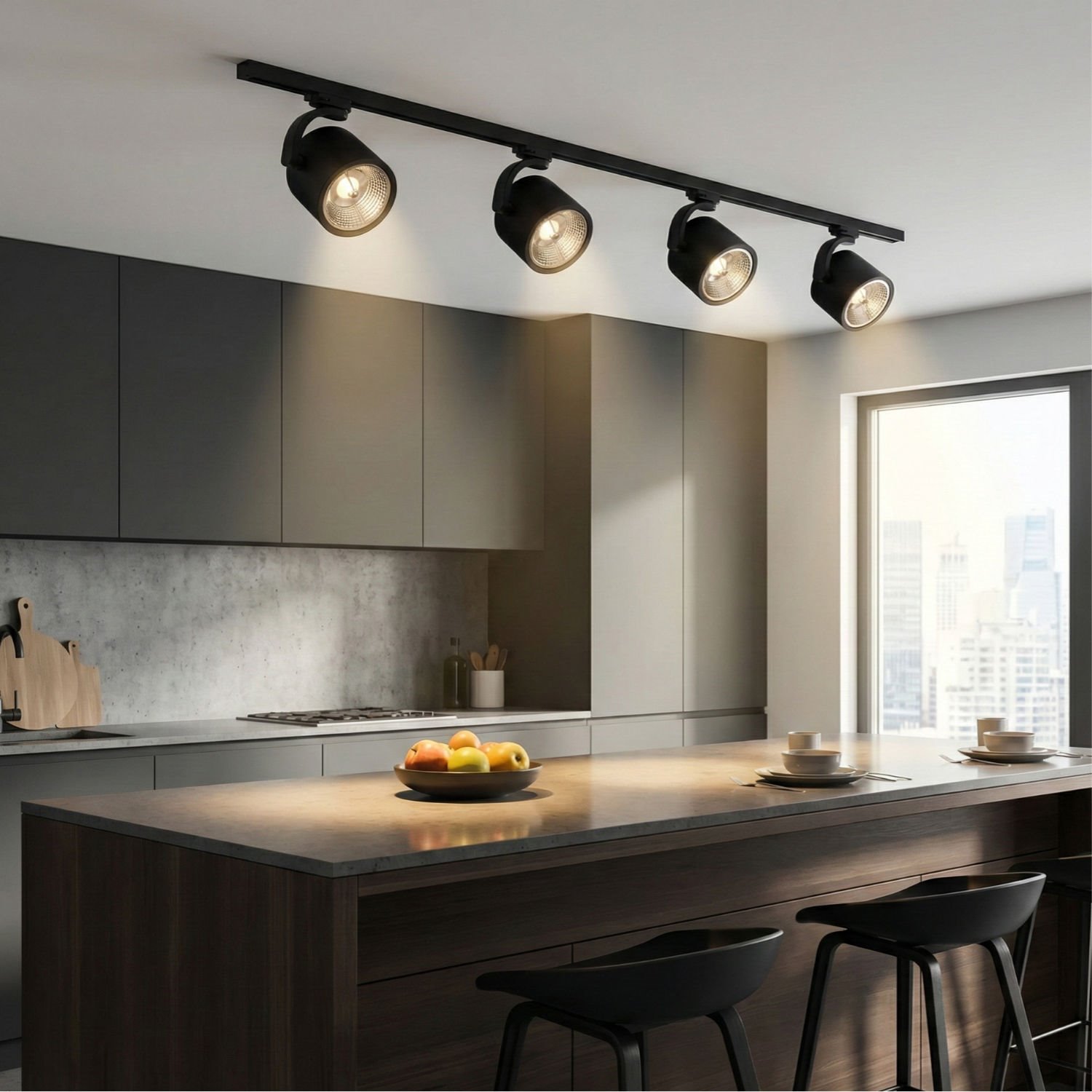 Obudowa reflektora ARKO została wykonana z wysokiej jakości aluminium, wykończonego w eleganckim, głębokim matowym czarnym kolorze. Cylindryczna, zwarta bryła tuby o średnicy 120 mm prezentuje się niezwykle solidnie, a jednocześnie dyskretnie wtapia się w nowoczesne sufity. Odbłyśnik żarówki AR111 nie tylko efektywnie kieruje strumień świetlny, ale stanowi też dopracowany detal wizualny, który nadaje oprawie technicznego charakteru.