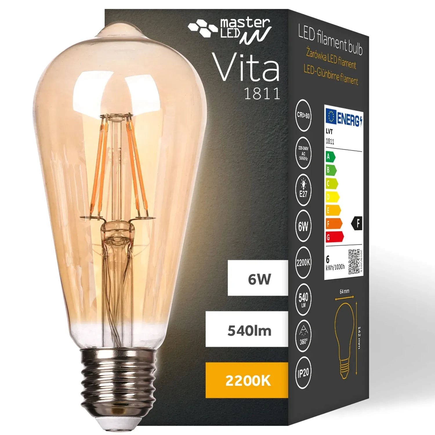 Żarówka LED V-TAC 8W E27 Filament Bursztyn ST64 VT-1968 2200K 700lm