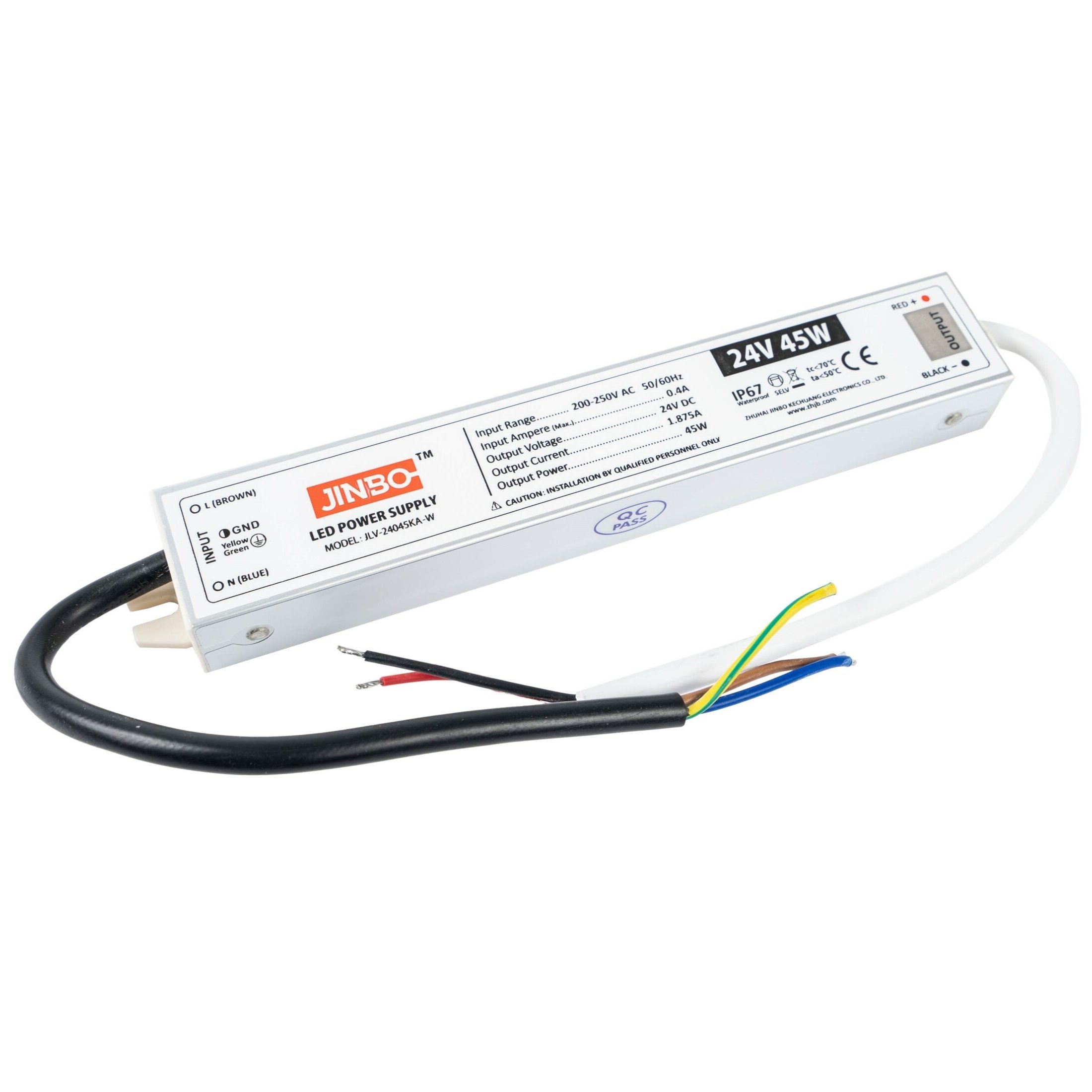 Profesjonalny zasilacz LED 24V IP67 o mocy 45W to urządzenie stworzone z myślą o stabilnym,oraz długotrwałym zasilaniu taśm LED i innych źródeł światła pracujących w systemie 24V. Zasilacz hermetyczny doskonale sprawdza się wszędzie tam, gdzie warunki pracy są bardziej wymagające niż w standardowych instalacjach wewnętrznych. Dzięki wysokiej klasie szczelności IP67 może być stosowany w oświetleniu zewnętrznym, w miejscach narażonych na wilgoć, pył, opady atmosferyczne oraz zmienne temperatury. To doskonały wybór do podświetlenia elewacji, ogrodów, podjazdów, altan, tarasów, witryn, reklam świetlnych czy stref technicznych, gdzie liczy się trwałość i pewność działania. Stałe napięcie wyjściowe 24V zapewnia równomierną pracę podłączonego oświetlenia, co przekłada się na brak migotania, odpowiednią jasność oraz dłuższą żywotność taśm LED. Uniwersalny zakres napięcia wejściowego 170–250V AC pozwala na bezproblemową pracę w różnych warunkach sieciowych, zwiększając elastyczność montażu i bezpieczeństwo użytkowania.
