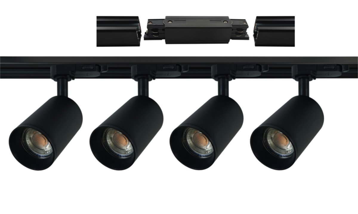 W zestawie: 2x szyna 3-fazowa 1m, 2x zaślepka, łącznik z możliwością zasilania, 4x reflektor GU10