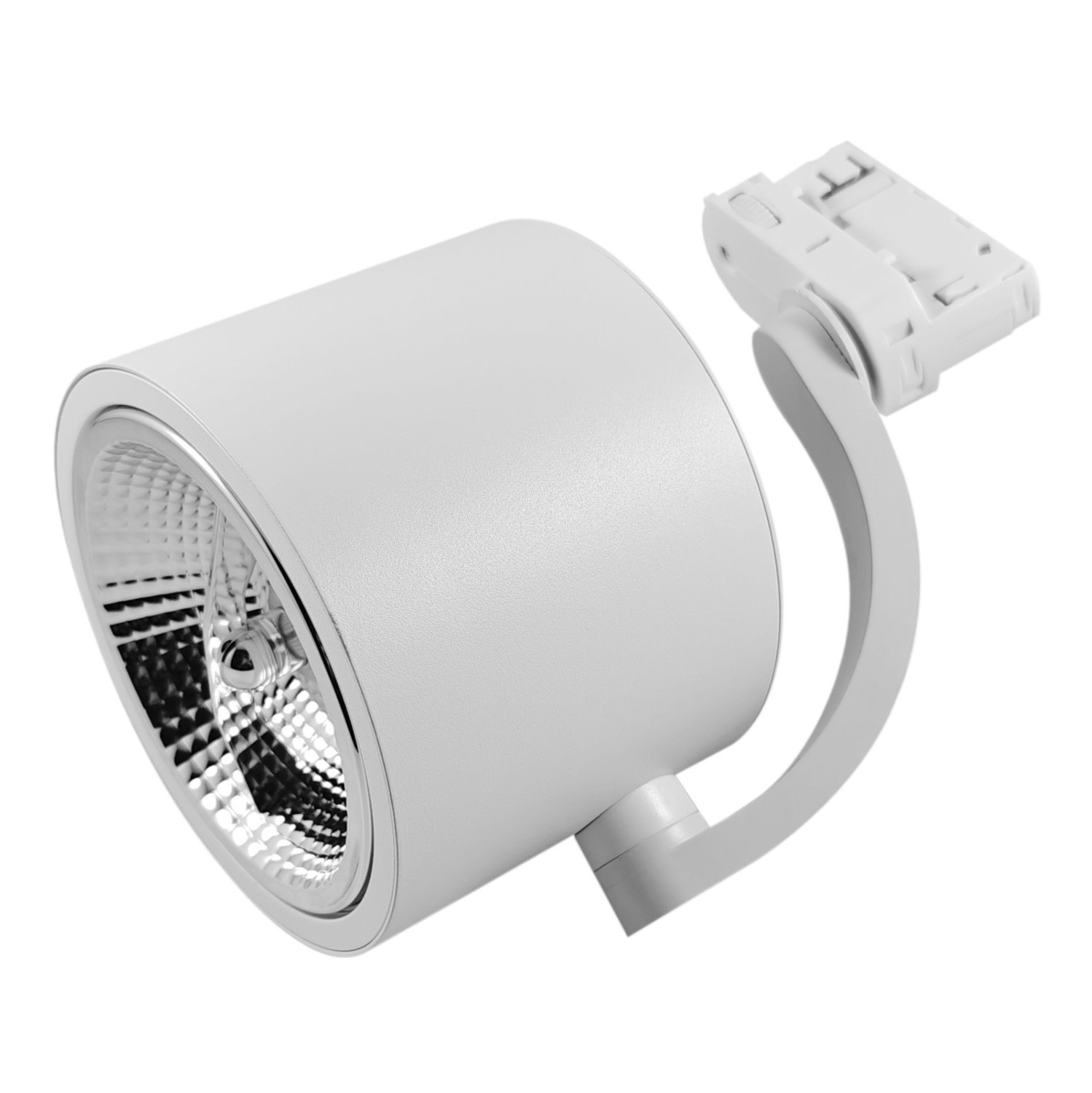 Konstrukcja reflektora ARKO opiera się na cylindrycznej, aluminiowej obudowie wykończonej w białym macie. Wykorzystanie wysokiej jakości aluminium w połączeniu z elementami ABS zapewnia nie tylko trwałość, ale także doskonałe odprowadzanie ciepła ze źródła światła. Wnętrze oprawy zostało zaprojektowane z myślą o żarówkach typu AR111, których duża średnica i charakterystyczny odbłyśnik nadają całości techniczny, a zarazem elegancki sznyt. Każdy detal, od precyzyjnych przegubów po estetyczny adapter szynowy, został dopracowany tak, aby system wtapiał się w architekturę sufitu.
