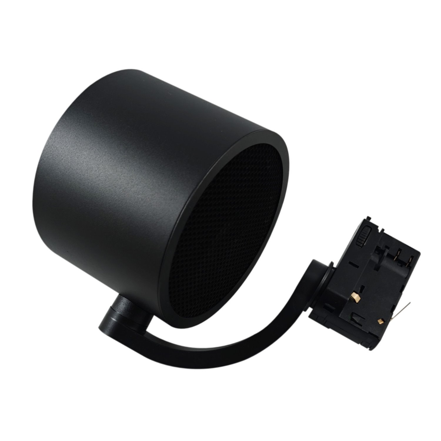 Konstrukcja reflektora ARKO opiera się na cylindrycznej, aluminiowej obudowie wykończonej w głębokim, czarnym macie. Wykorzystanie wysokiej jakości aluminium w połączeniu z elementami ABS zapewnia nie tylko trwałość, ale także doskonałe odprowadzanie ciepła ze źródła światła. Wnętrze oprawy zostało zaprojektowane z myślą o żarówkach typu AR111, których duża średnica i charakterystyczny odbłyśnik nadają całości techniczny, a zarazem elegancki sznyt. Każdy detal, od precyzyjnych przegubów po estetyczny adapter szynowy, został dopracowany tak, aby system wtapiał się w architekturę sufitu.