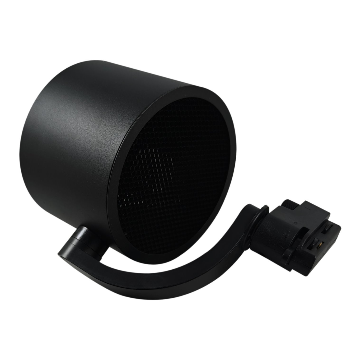 Obudowa reflektora ARKO to dopracowane połączenie wysokiej jakości aluminium oraz wytrzymałego tworzywa ABS, wykończone w głębokim, czarnym macie. Korpus o cylindrycznym kształcie i średnicy 120 mm kryje w sobie żarówkę, której odbłyśnik nie tylko efektywnie potęguje strumień świetlny, ale nadaje oprawie techniczny, loftowy charakter. Dzięki solidnemu ramieniu montażowemu, reflektor prezentuje się niezwykle stabilnie na szynie, stanowiąc wyrazisty akcent architektoniczny w minimalistycznych wnętrzach.